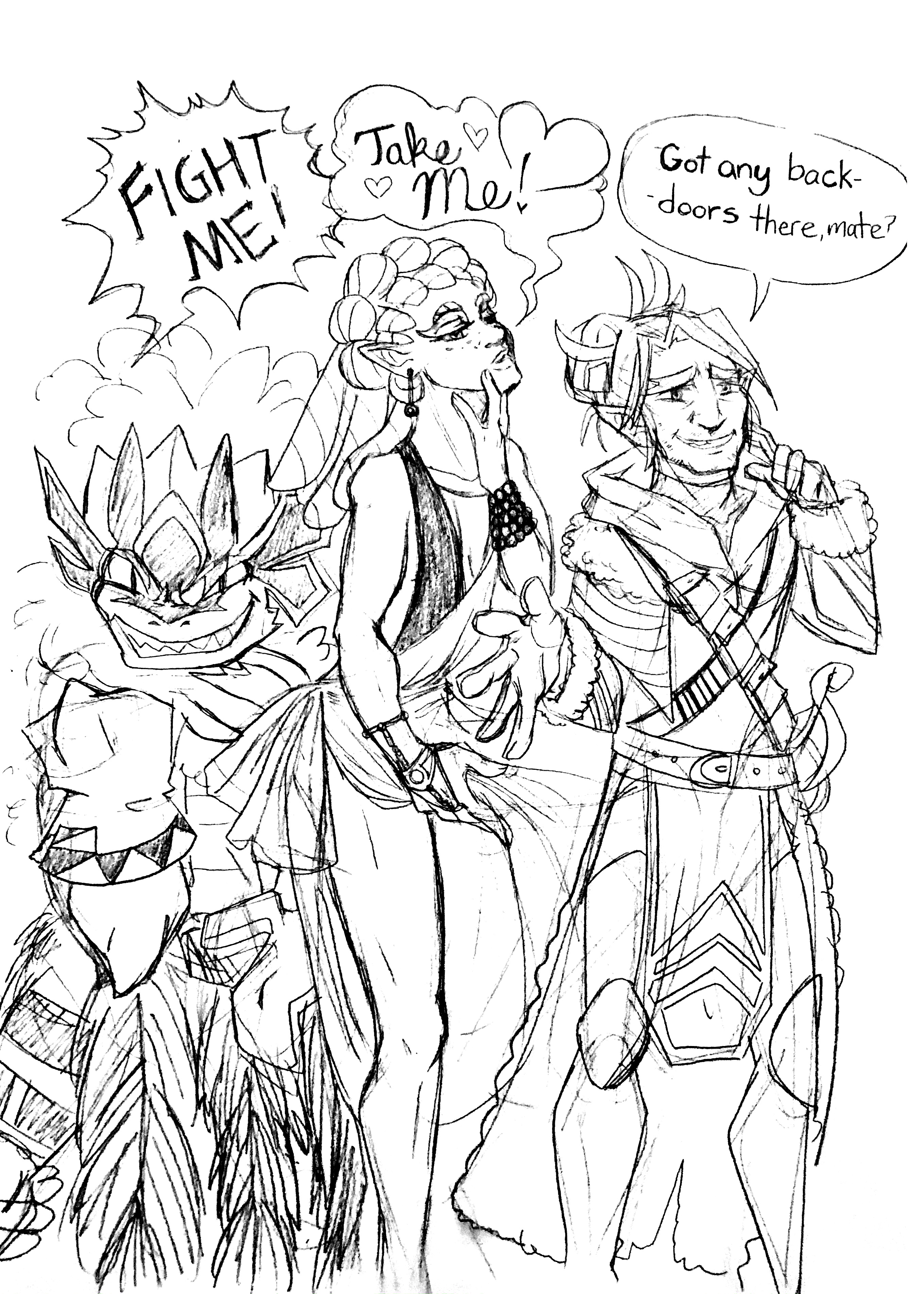 I kept a sketchbook for the duration of a character-based tabletop game. You can see the highlights of our adventure as drawn by yours truly!