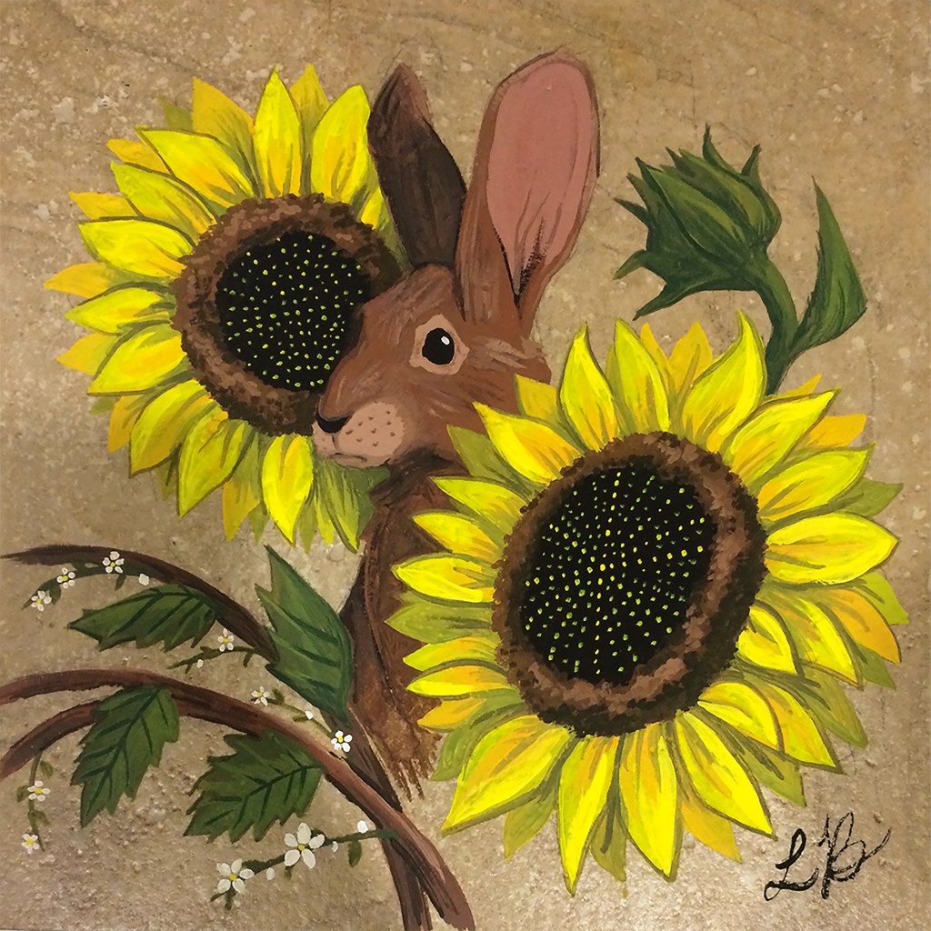 This garden tile was a commissioned as an indoor art piece for display inside a sun room with a variety of indoor plants. However, the client left it outside overnight after a heavy rain and subsequent freeze. The sealer over the paint shrank away from the surface of the tile and caused the paint to “peel”. However, I still think it looks cool!