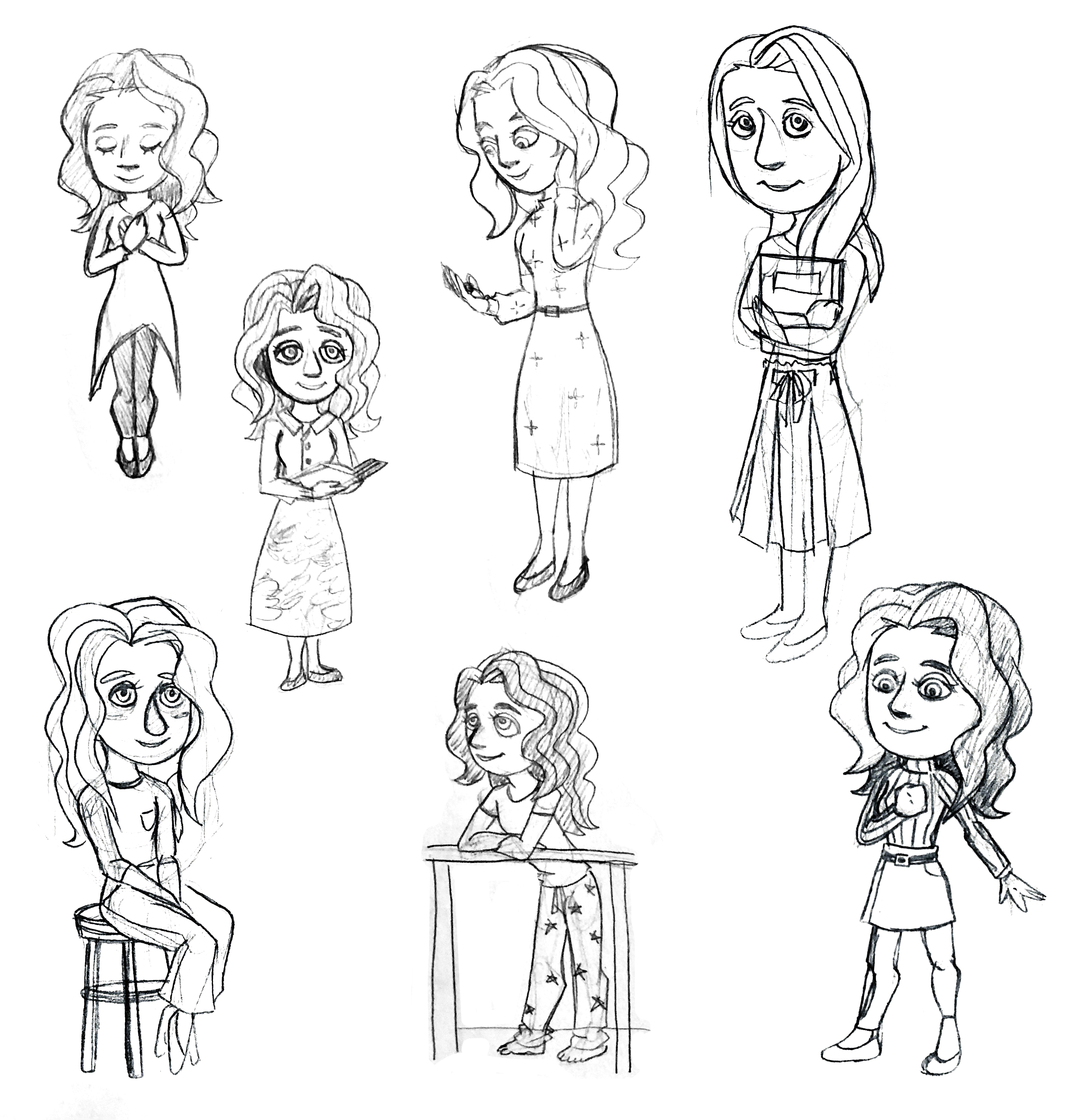 Below are some of my sketches and process work. The colors went through several revisions, too.